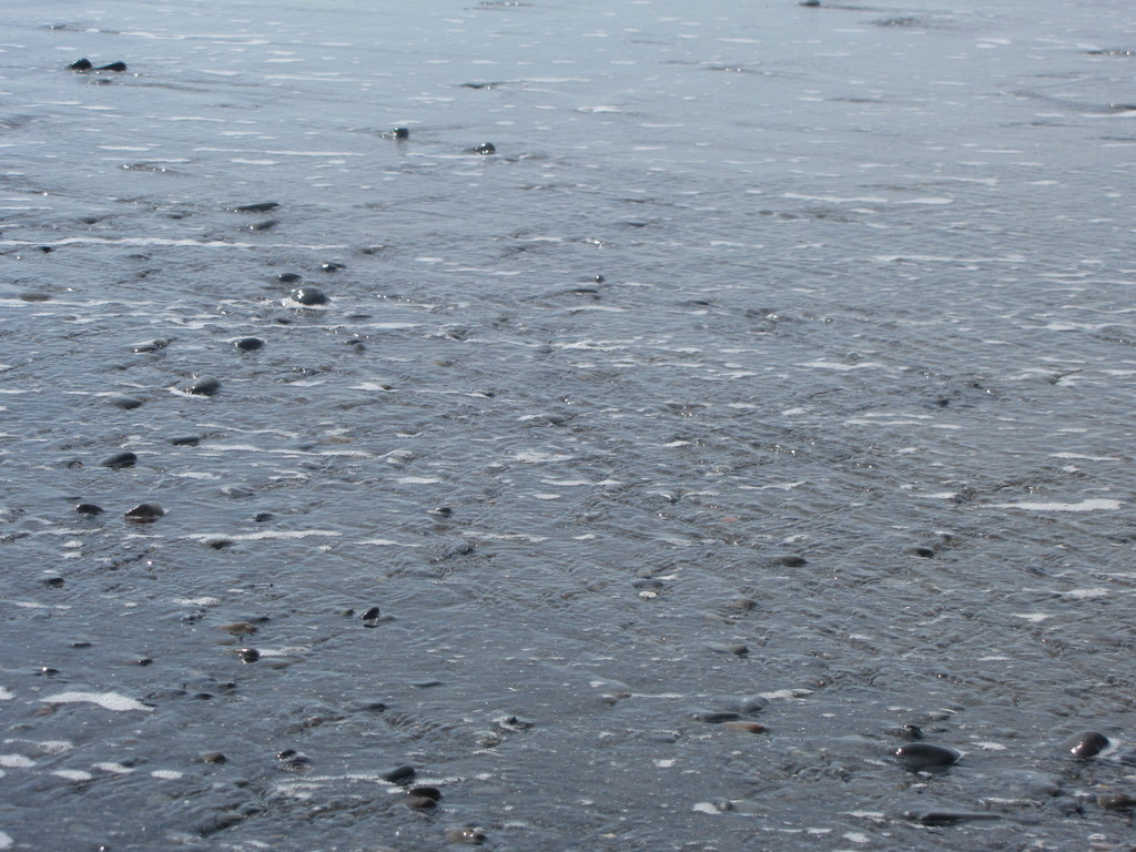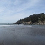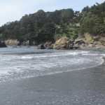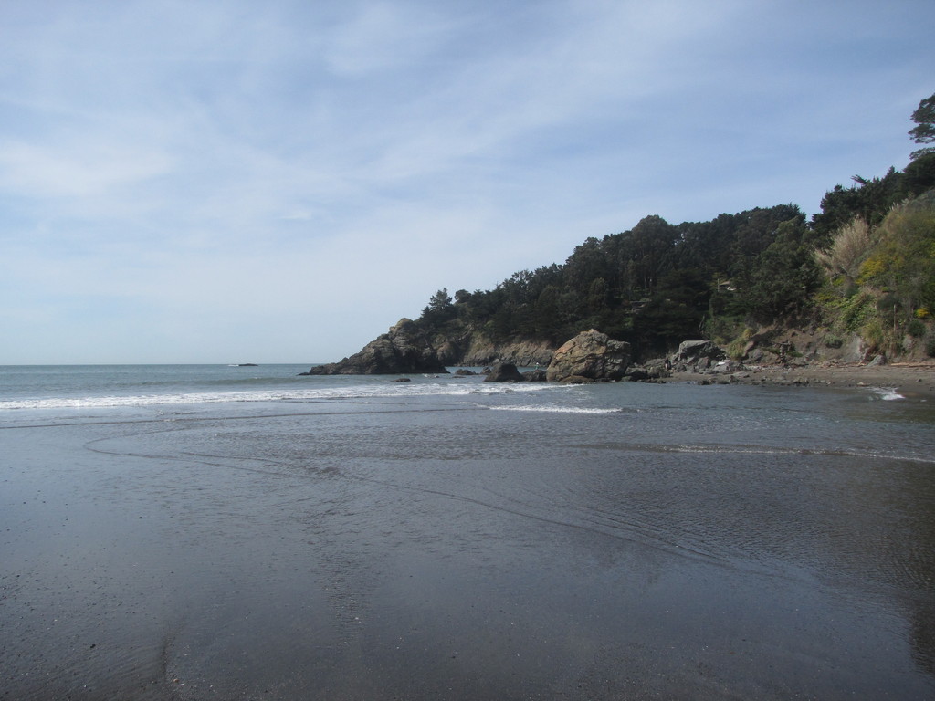 Muir Beach haben wir am späten Vormittag erreicht, der langgezogene Strand liegt an einer geschützten Bucht zwischen Bergen, der Redwood Creek mündet hier in den Pazifik. E. war von dem Flüßchen begeistert, dass da keck über die Steine im Flußbett sprudelte und legte sich ohne Zögern in das eiskalte Wasser.