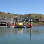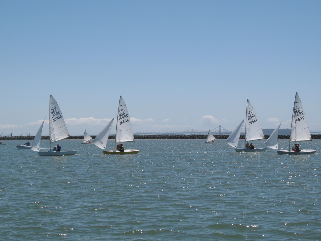 Samstag war Wettkampftag im Richmond Yacht Club und e. und ich wurden zum “Race Committee” eingeteilt, e. auf dem Boot der Rennleitung und ich auf dem Hilfs-Schlauchboot. Zu unseren Aufgaben gehörte das Setzen und (später) Einholen der Bojen für den Segelkurs und die Überwachung der Sicherheit der Teilnehmer. Bei mäßigen Winden hat es vier Kenterungen gegeben und bei keiner war unsere Hilfe nötig. Primär geht es dabei um den psychologischen Effekt, wer im eiskalten Wasser schwimmt und sein Boot wieder aufrichten muss, weiß gerne Hilfe in der Nähe. Es kommt wohl gelegentlich auch vor, dass die Teilnehmer sich im Wettkampf so verausgaben, dass sie nach einer Kenterung keine Kraft mehr haben.