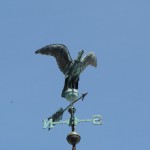 E. und der Wetterhahn sind keine Freunde, hockt er da oben, bewegt sich und läßt sich durch Bellen nicht vertreiben. Ich sag nur: brain-to-muscle. (hoffentlich geht das durch die Zensur…)