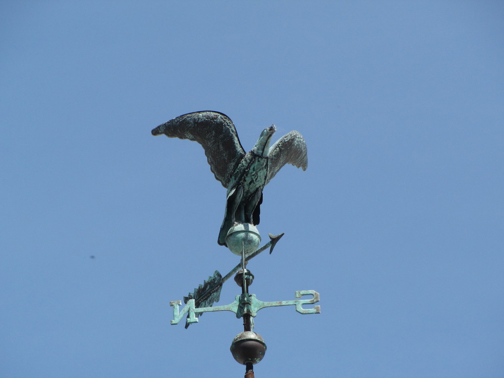 Unsere Vermieter haben auch einen Wetterhahn auf dem Dach. Der ist nicht verklemmt und auch nicht arrogant, er schwenkt ohne schuldhaftes Zögern auf die richtige Windrichtung ein. Dennoch sind unsere Vermieter mit ihm unzufrieden. Es heisst, sein Sockel sei nicht ganz dicht und der Regen bahne sich dort seinen Weg.