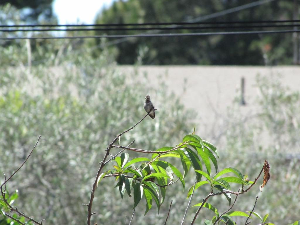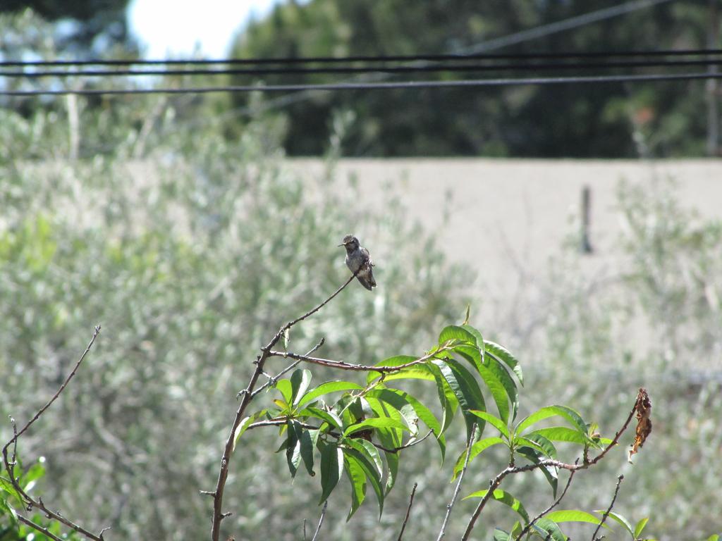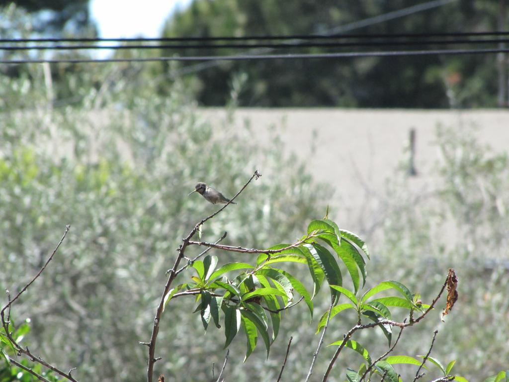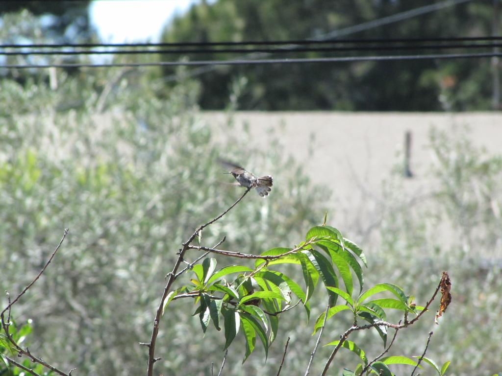 Anyway, what I wanted to say: Es hat funktioniert, wir haben den ersten Gast, ein Anna’s Hummingbird nutzt die Tränke, wir haben ihn “Karl” genannt (Karl Dall war gerade Thema, als der Hummer plötzlich an der Tränke saß). Karl ist jung, neugierig und etwas unbeholfen. Er trägt das graue Federkleid der Anfänger. Er fliegt auf Armlänge an uns heran und betrachtet uns neugierig. Und beim Nektarsaugen aus Blumen sind ihm oft Blätter oder Äste im Weg, dann braucht er mehrere Versuche von verschiedenen Seiten.