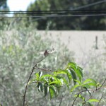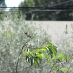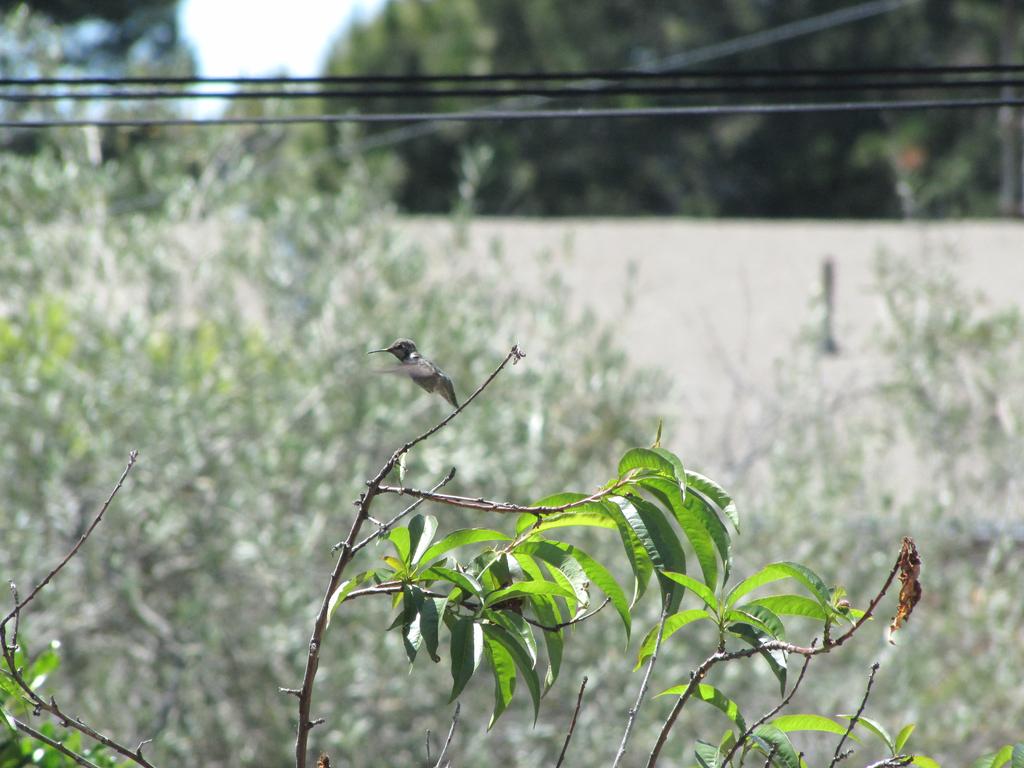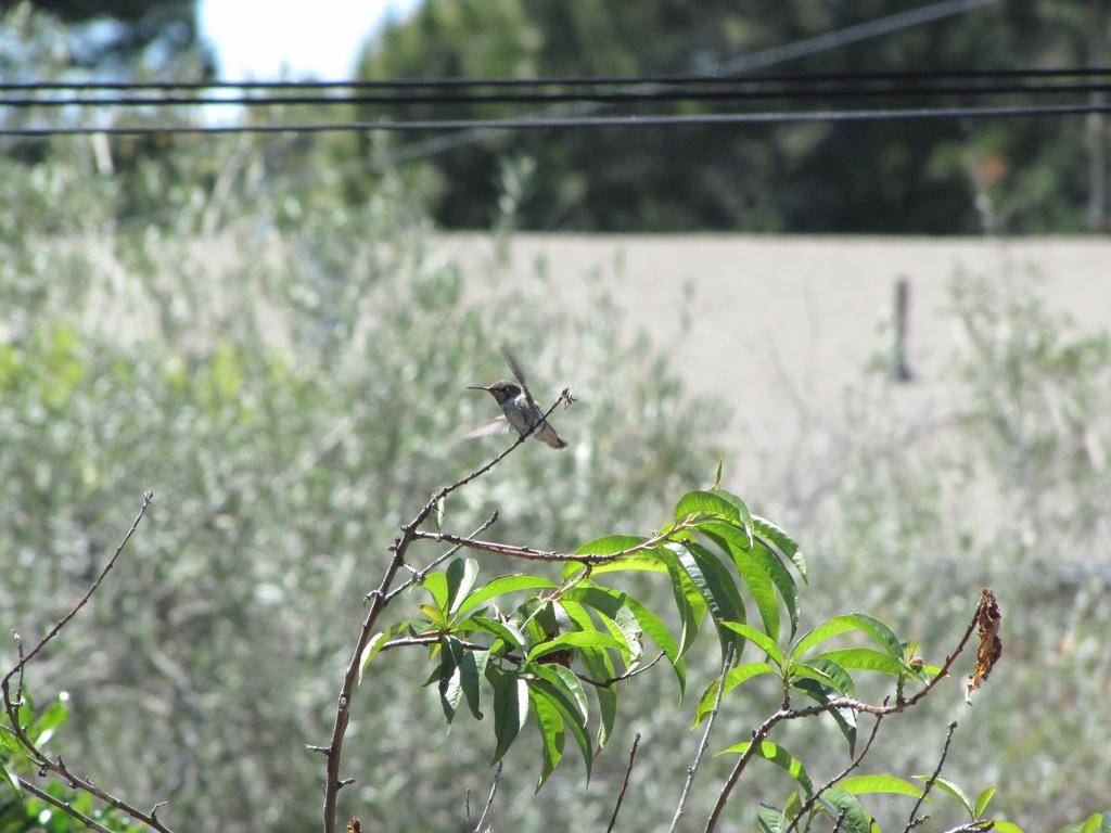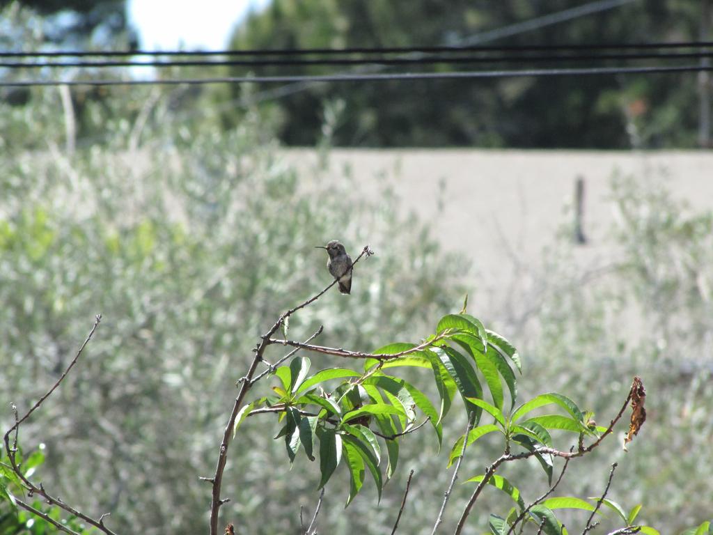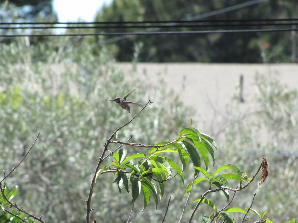 Anyway, what I wanted to say: Es hat funktioniert, wir haben den ersten Gast, ein Anna’s Hummingbird nutzt die Tränke, wir haben ihn “Karl” genannt (Karl Dall war gerade Thema, als der Hummer plötzlich an der Tränke saß). Karl ist jung, neugierig und etwas unbeholfen. Er trägt das graue Federkleid der Anfänger. Er fliegt auf Armlänge an uns heran und betrachtet uns neugierig. Und beim Nektarsaugen aus Blumen sind ihm oft Blätter oder Äste im Weg, dann braucht er mehrere Versuche von verschiedenen Seiten.