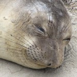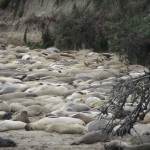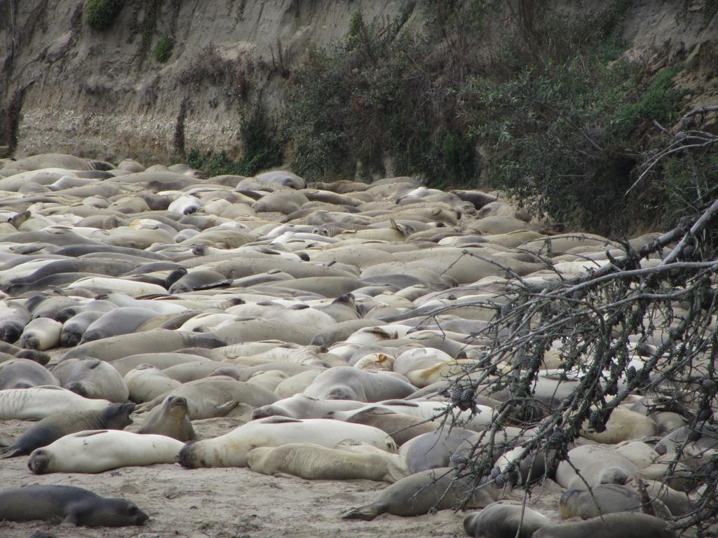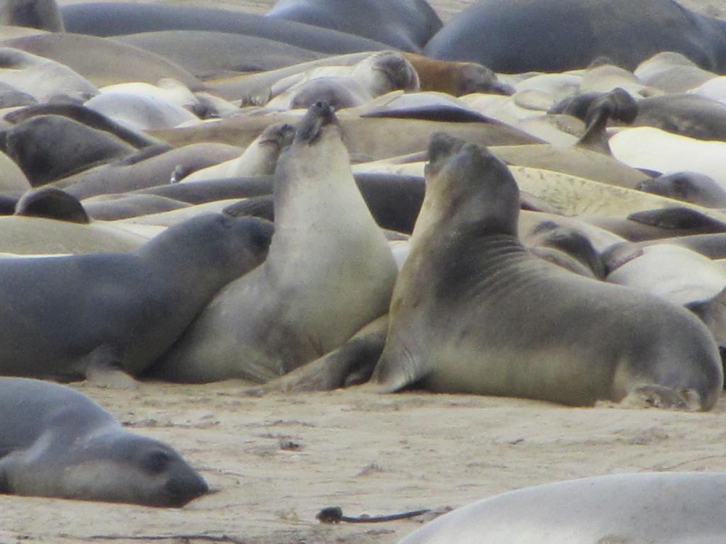 Der Ano Nuevo State Park, einige Kilometer nördlich von Santa Cruz, ist bekannt dafür, dass dort jedes Jahr See-Elefanten an den Strand gehen, ihre Jungen bekommen und wieder davon schwimmen. Zu dieser Zeit des Jahres kommen als erste die Jungtiere wieder zurück. Sie lagern auf dem nördlichsten Strand, immerhin 45 Minuten Fußmarsch vom Parkplatz entfernt. Man hört sie schon von weitem. Die Halbstarken tragen ihre Kämpfe aus, im Wasser und an Land. Dabei grunzen sie laut und tief, richten ihre Oberkörper auf und knallen diese aneinander. Ausgewachsene See-Elefantenmänner können bis zu dreieinhalb Tonnen schwer werden und über sechs Meter lang. Die Damen der Schöpfung sind ungleich zierlicher mit nur 3 Metern Länge und maximal 900 kg Gewicht. Beide sind von ungemeiner Wendigkeit, die man ihnen nicht zutraut. Darum stehen überall Warnschilder, die dazu auffordern, Abstand zu halten.