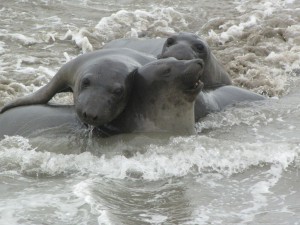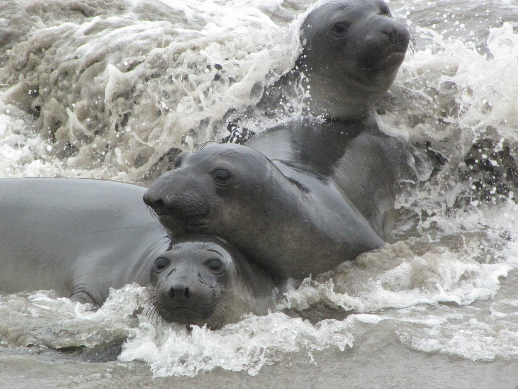 Año Nuevo State Park. Die weiblichen Seelöwen warten auf die Ankunft der Männer. Das läuft offensichtlich ganz anders als bei uns. Oder habt Ihr schon Mal ein Mädchen mit einem Blumenstrauß an der Bushaltestelle stehen sehen? Da habtas: Bei uns Trockennasenaffen warten die Männchen. Ich hab so oft gewartet. So. Oft.