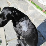 Bevor wir uns nun der Kriminalität unter Menschen widmen ein kurzer Exkurs zu Gewalt unter Tieren. E. ist im Park von einem Staffordshire Terrier Mischling gebissen worden. Das sieht jetzt schlimmer aus als es ist, sie hat zwei kleine Löcher von den Eckzähnen. Aber es bedient trotzdem die gängigen Vorbehalte gegen Listenhunde. Der Besitzer kommt nächste Woche vorbei und bezahlt unsere Tierarztrechnung. Und hier noch E., großflächig kahlrasiert: