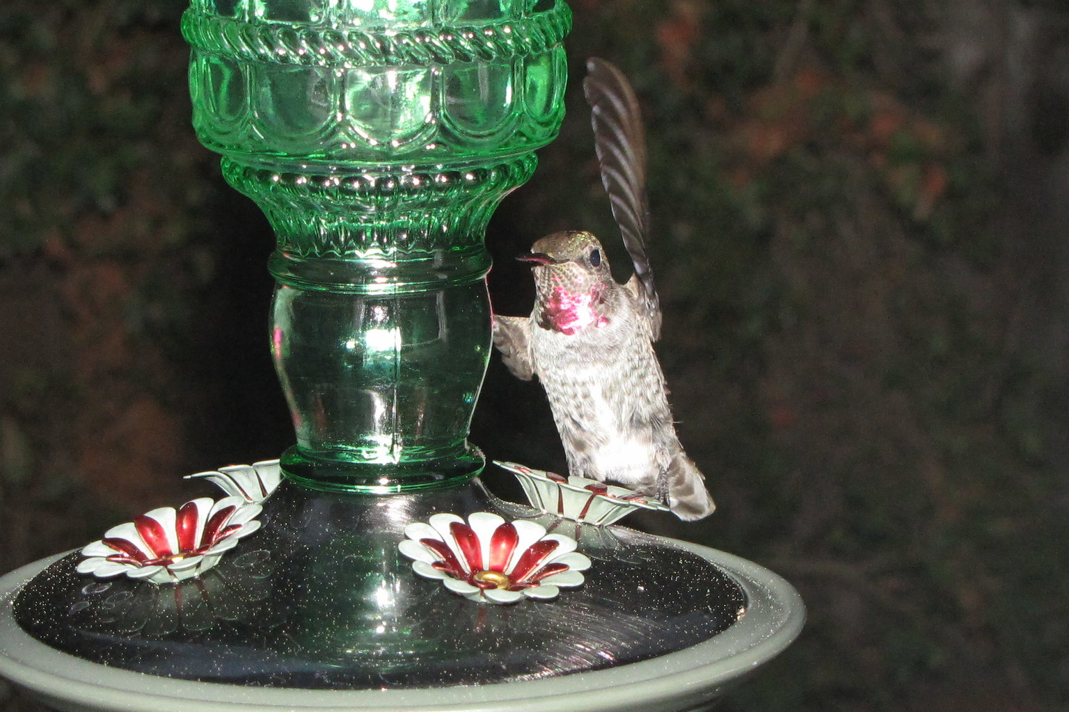 Der Winter kommt. Die Hummingbirds werden nach Mexico migrieren. Der Annas Hummingbird bleibt zwar in Kalifornien, aber er taucht im Winter nicht an der Tränke auf, ich weiß nicht, warum. Vielleicht mit dem Nachwuchs beschäftigt? Das soll ja – was man so hört – eher stressig sein.